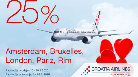 Croatia Airlines pripremio je posebnu ponudu povodom Dana zaljubljenih u sklopu koje putnici mogu ostvariti 25 posto popusta prigodom kupnje...