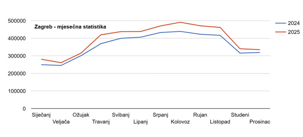 Sveukupno gledano, 2025. godina za Zagreb ne donosi jednokratan skok ili izolirani “boom” u pojedinim mjesecima, već stabilan i strukturni rast. Promet se povećava u rasponu od približno pet do četrnaest posto kroz gotovo cijelu godinu, što je s operativnog i infrastrukturnog aspekta izrazito povoljan scenarij.