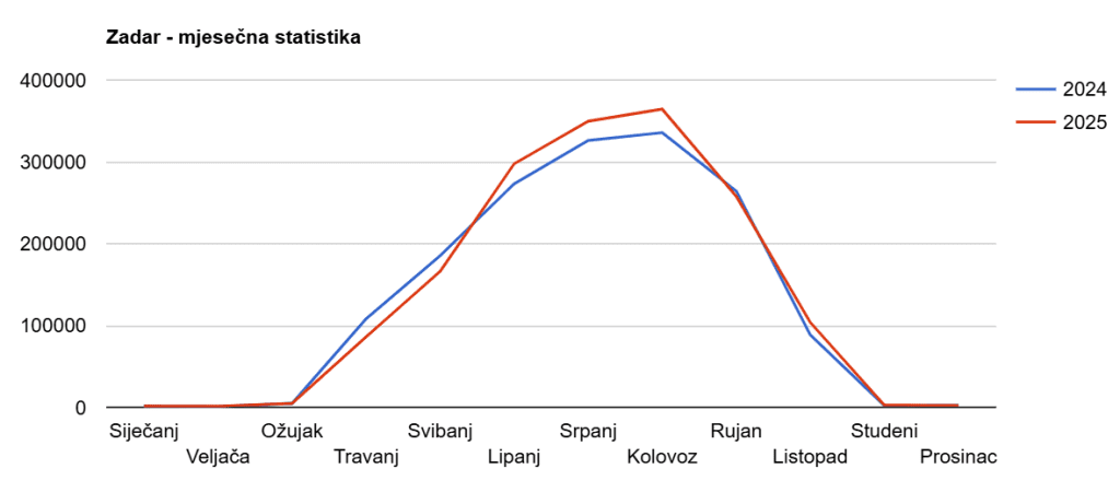 Ukupno gledano, 2025. godina u Zračnoj luci Zadar obilježena je izrazito snažnim ljetom, koje je nadoknadilo slabije proljetne mjesece i omogućilo novi godišnji rekord po broju putnika. Dok je 2024. imala ravnomjernije raspoređen rast tijekom proljeća i ljeta, 2025. se ističe snažnijom sezonskom koncentracijom, ali i većim ukupnim obujmom prometa.